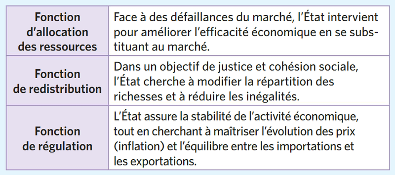1. A l'aide du document 1, retrouvez la fonction de l'Etat dans chaque situation suivante :