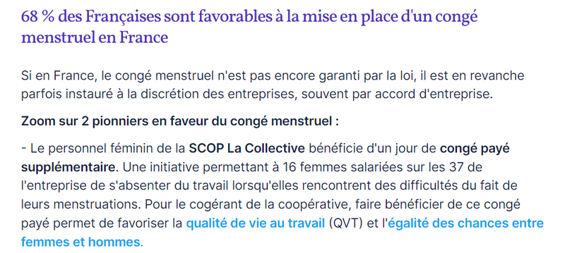5. A l'aide des documents 6, 7 et 8, retrouvez la réponse à apporter à Madame Harmi concernant son congé menstruel.