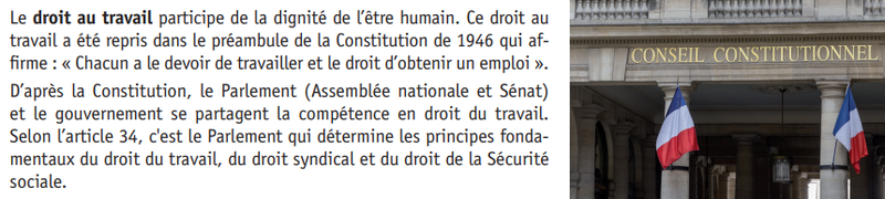 2. A l'aide du document 3, retrouvez le principe concernant le travail qui est inscrit dans la constitution. Expliquez comment une loi se retrouve inscrite dans le code du travail.