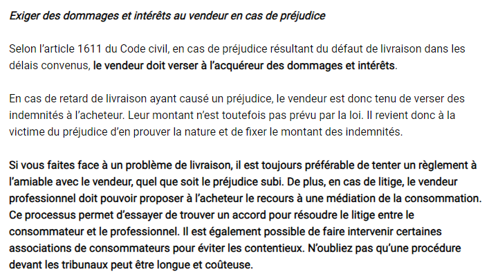 3. Mr Desnoyers souhaite des dommages et intérêts. Avec l'aide du document 3, expliquez lui ce qu'il peut demander.