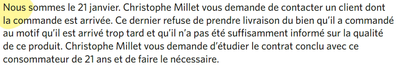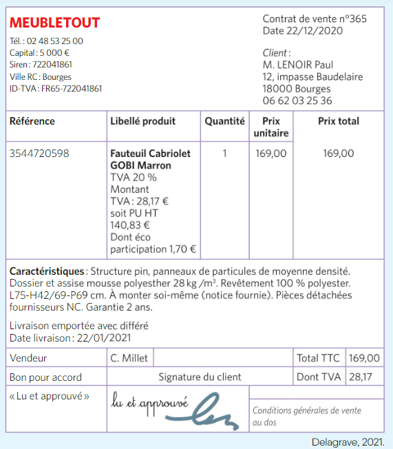 2. A l'aide des documents 1, 2 et 3, apportez une réponse justifiée à votre client qui souhaite annuler la vente.
