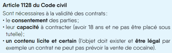 3. A l'aide des documents 2 et 3, vérifiez que le contrat respecte bien les critères suivants prévus par la loi.