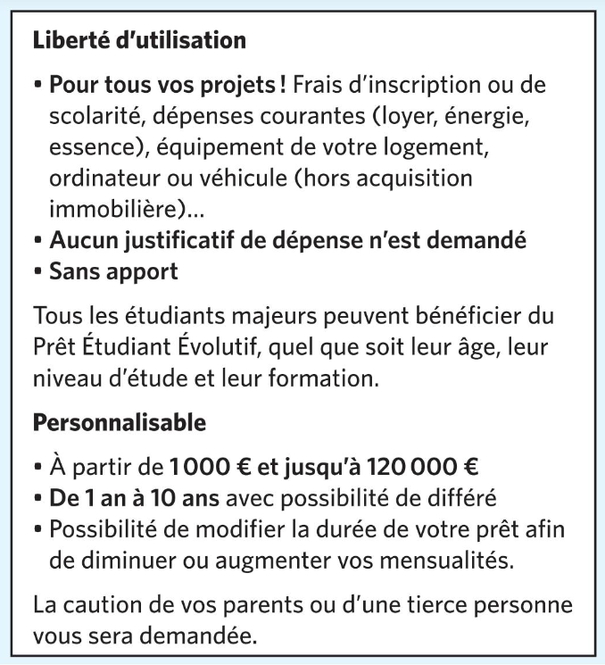 5. La famille Lou vous sollicite pour financer les études universitaires de leur fils Max qui rentre dans une école pour 5 ans et dont les frais s'élèvent à 5.000€ l'année. A l'aide du document 6, indiquez les caractéristiques du prêt étudiant. Calculez l'emprunt souhaité par la famille Lou. Définissez combien elle devra rembourser, sachant que les taux d'intérêt sont à 2%.