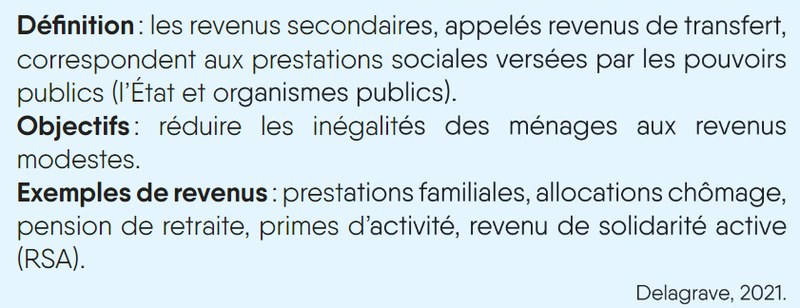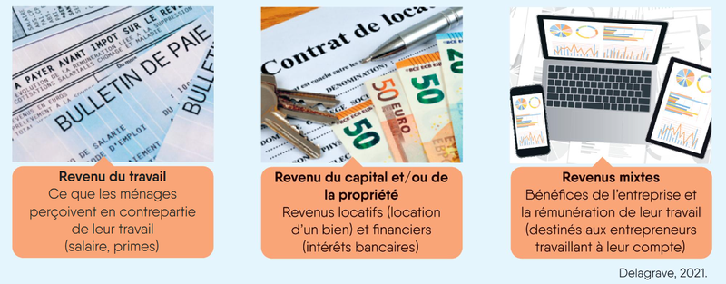 1. A l'aide du document 1, classez les revenus des familles Tran et Lou dans un tableau comprenant les revenus primaires (Travail, capital, Mixte) et les revenus secondaires.