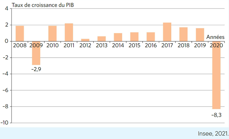 1. A l'aide du document 1 et de la vidéo de la page d'accueil, expliquez ce qui s'est passé pour la France en terme de PIB.