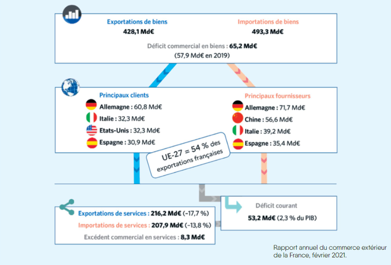 2. A l'aide des documents 2 et 3, calculez l'ensemble des importations et des exportations de la France. Expliquez ce qui peut faire dire que la balance commerciale est déficitaire.