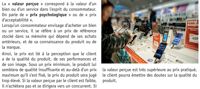 1. A l'aide du document 1, expliquez un achat que vous avez réalisé où vous avez ressenti une "Valeur perçue" trop faible ou trop forte.
