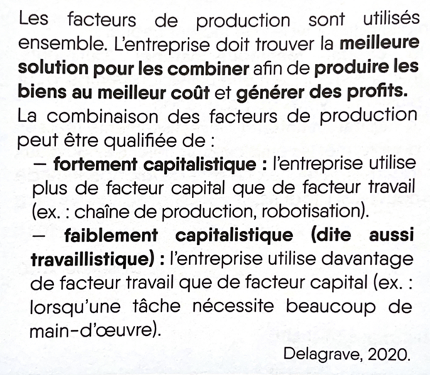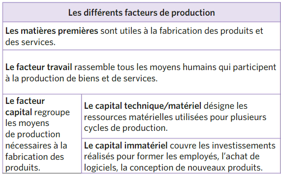 1. A l'aide des documents 1 et 2, identifiez les facteurs de production pour chaque étape de fabrication.