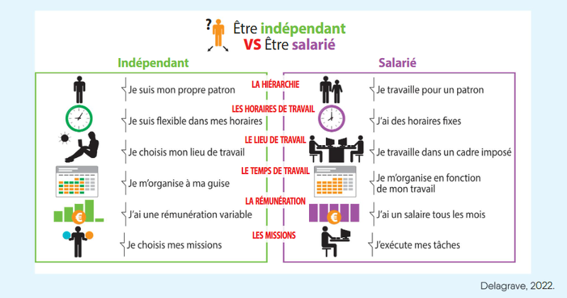 1. A l'aide des documents 1 et 2, citez deux avantages et deux inconvénients du statut de salarié et du statut d'indépendant.