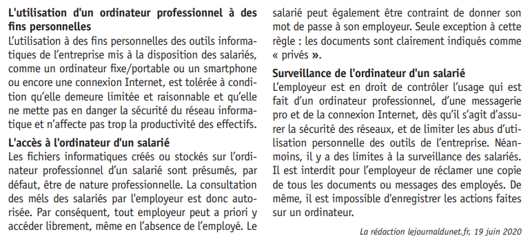 L'employeur peut contrôler ponctuellement l'usage qui est fait des outils numériques ?