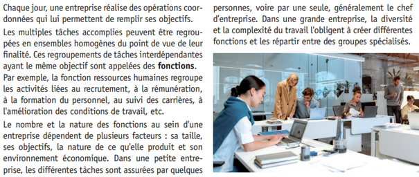 1. A l'aide du document 1, définissez ce qu'est une fonction dans une entreprise.