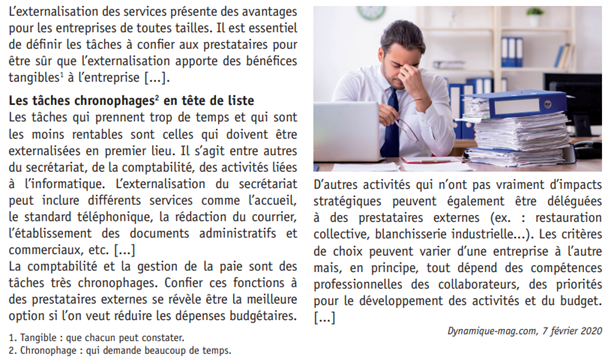4. A l'aide du document 4, listez les tâches chronophages que pourraient externaliser l'entreprise Modus Design ?