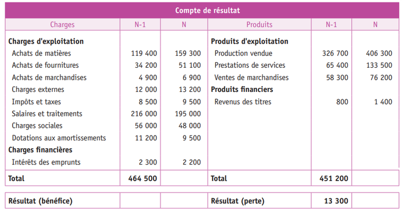 3. A l'aide des documents 4 et 5, remplissez le compte de résultat d'Ecotôles. Expliquez si l'entreprise est en bénéfice ou en déficit. Justifiez votre réponse.