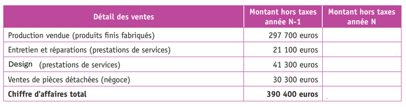 1. A l'aide des données laissées par votre tuteur et des documents 1 et 2, remplissez le tableau de chiffre d'affaires de l'année en cours.