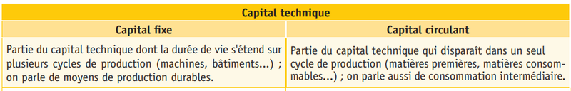 CAPITAL FINANCIER CAPITAL TECHNIQUE FIXE CAPITAL TECHNIQUE CIRCULANT